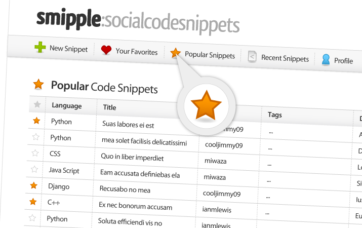 Type: UI Design, Icons Detail: UI and icon design for Simpple, social code snippets app by Ian Lewis.